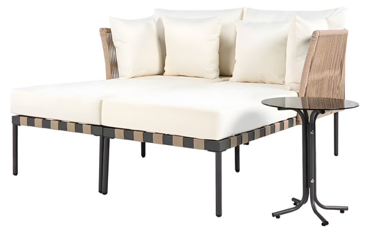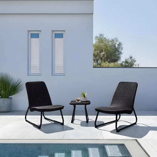 3-Piece Rattan Outdoor Lounge Chaise Set with Cushions (2-Pack)